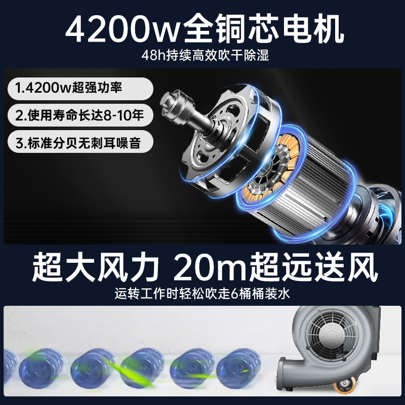 揚(yáng)子YZ-CGJ001地面吹干機(jī)4200W冷熱雙風(fēng)吹干效果高于自然風(fēng)機(jī),有限降低使用時(shí)間,6擋可調(diào)節(jié)橫掃潮濕通風(fēng)排氣。