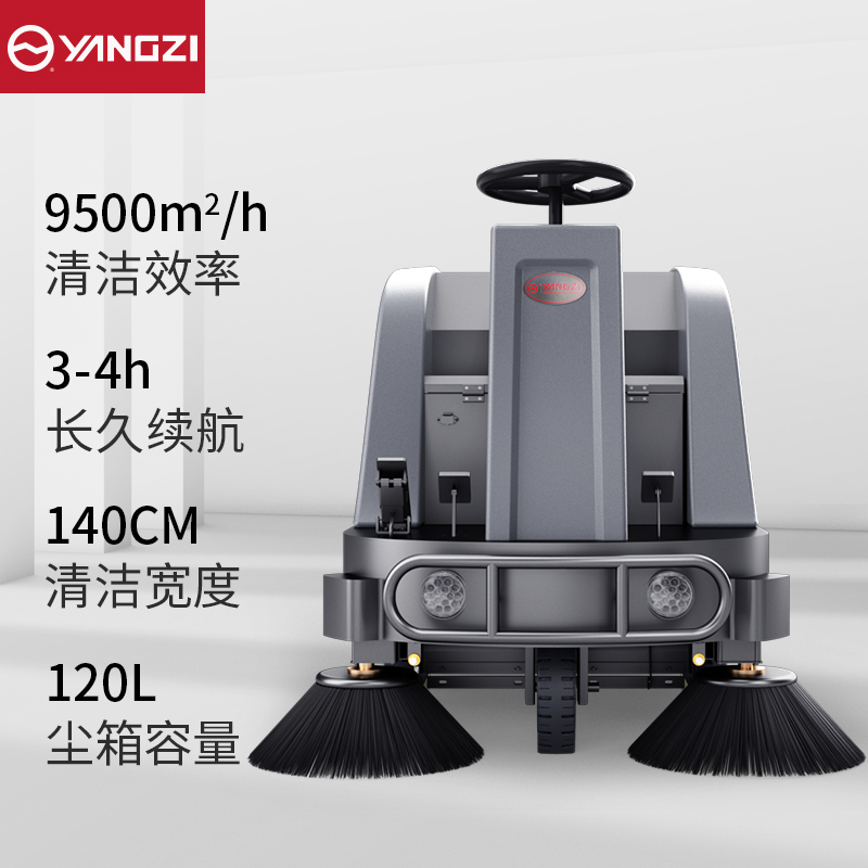 揚子駕駛式商用/工業掃地機,1小時清掃9500㎡,爬坡問題輕松解決,大容量雙箱設計,強力雙邊刷+主刷輕松清掃深度垃圾。